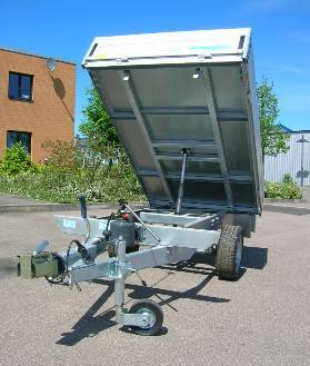 Hier kann die Ladefläche hydraulisch angehoben werden, um die Ladung zeit- und kraftsparend abzukippen. Die meisten Modelle sind wahlweise mit einer Handpumpe oder mit Elektropumpe lieferbar, wobei die Stromversorgung unabhängig vom Zugwagen über eine eingebaute Batterie erfolgt.